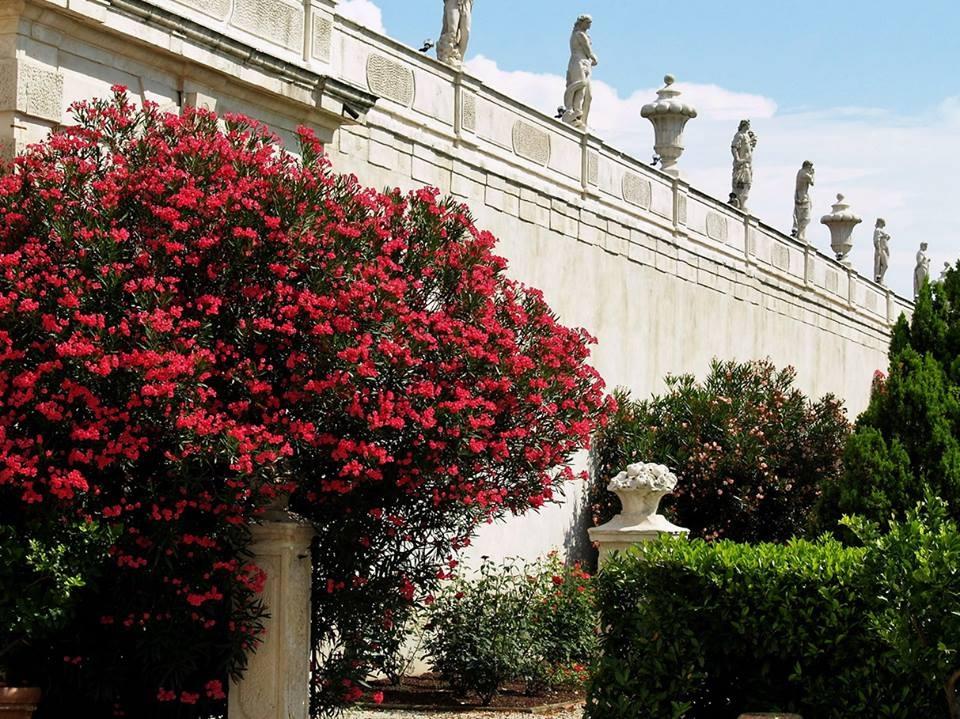 Il cortile meridionale è illeggiadrito dalla decorazione scultorea della bottega dei Bonazza (a cui si ascrive l’intero patrimonio scultoreo dei giardini della villa) su disegni del Tiepolo. In particolare di squisita fattura sono i due gruppi di Venere e Marte, Giove e Giunone, collocati nella corte nobile, e gli otto vasi intagliati posti tra i due giardini , che sono tra i più belli del Veneto, più classici quelli di mano di Francesco e più realistici quelli di Antonio Bonazza, che a due a due descrivono le fatiche dei contadini nella quattro stagioni.