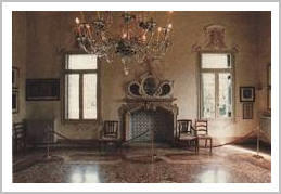 La prima sala a destra del pronao ospita un gigantesco lampadario a quattro colonne con delfini che sorreggono le candele. Negli ovali delle sovrapporte squisiti monocromi al gusto di Francesco Guardi, scoperti sotto una trentina di strati di calce. Tra le porte bellissima Adorazione dei Magi di Pompeo Batoni.